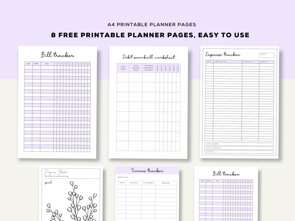 This free planner printable pack was created for you. Inside the pack, you will find 7 simply designed planner prints led to help you start getting your money act together.
